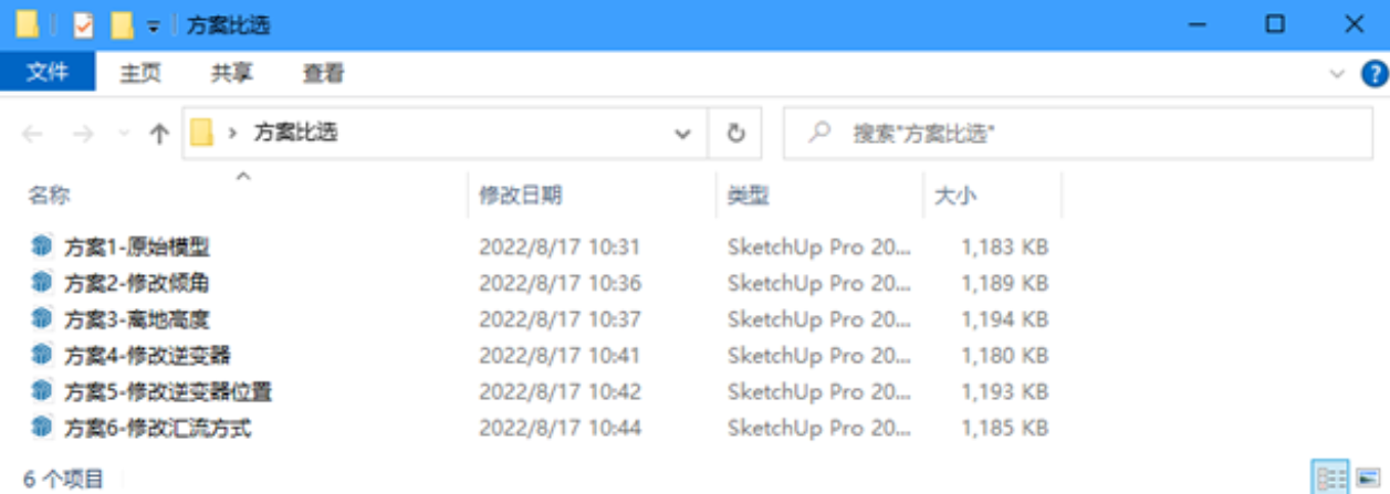 (1)任意位置新建一个文件夹,可以命名为“方案比选”,在文件夹里将原始模型复制多份,每一份分别命名为“方案X-需要比选的参数”